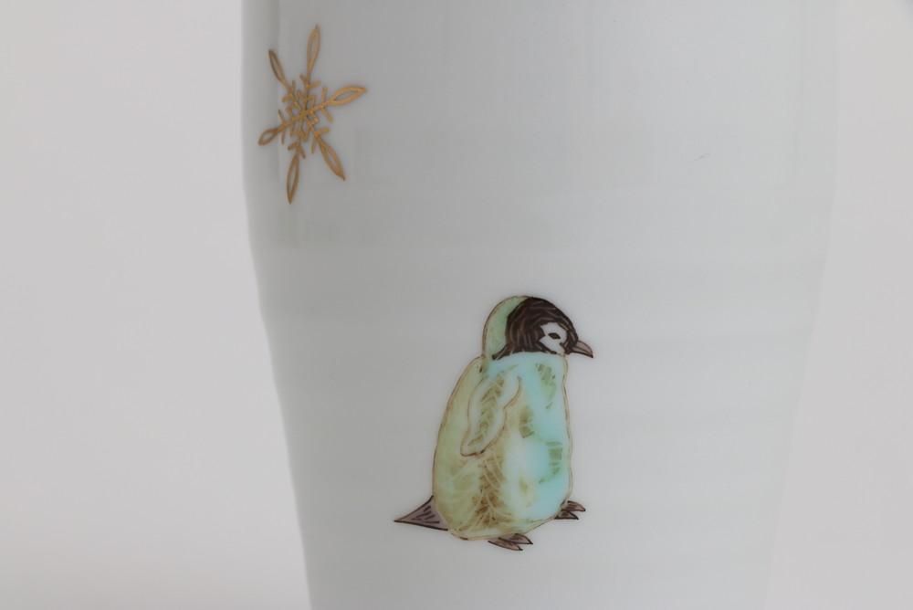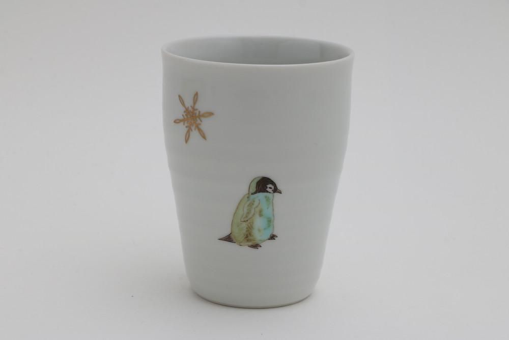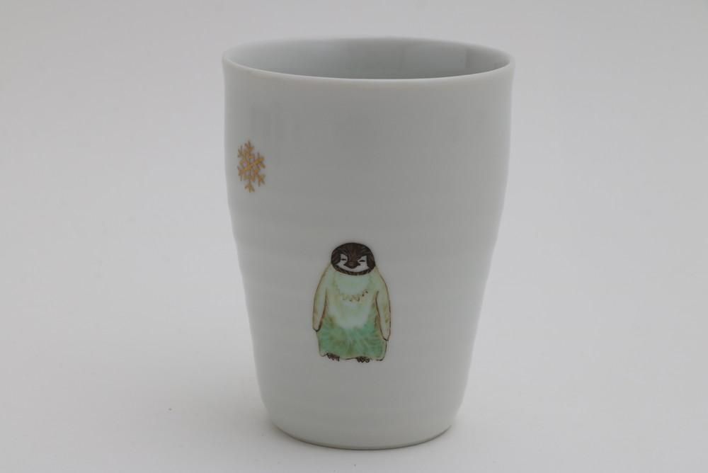 雪の結晶もアクセントになり、優しい色使いも印象的な器です。