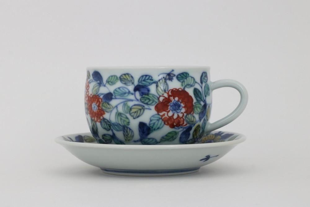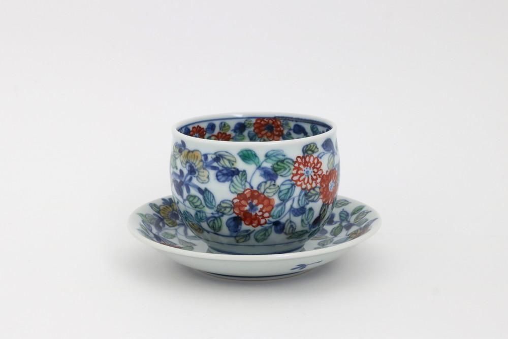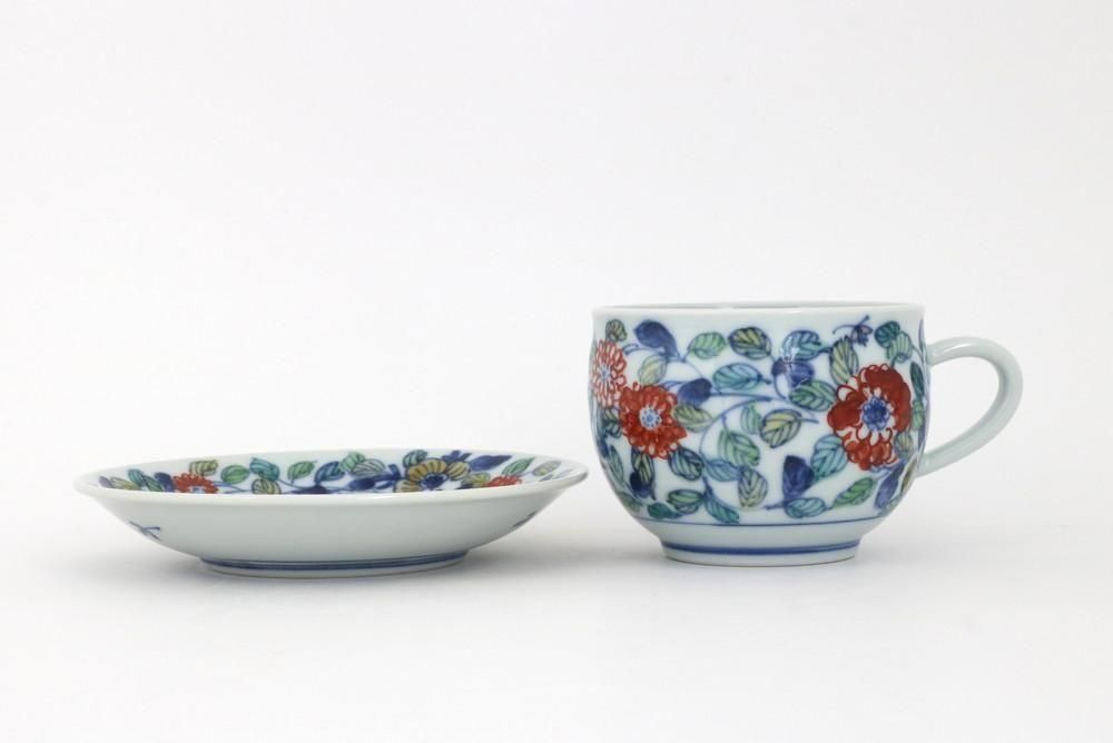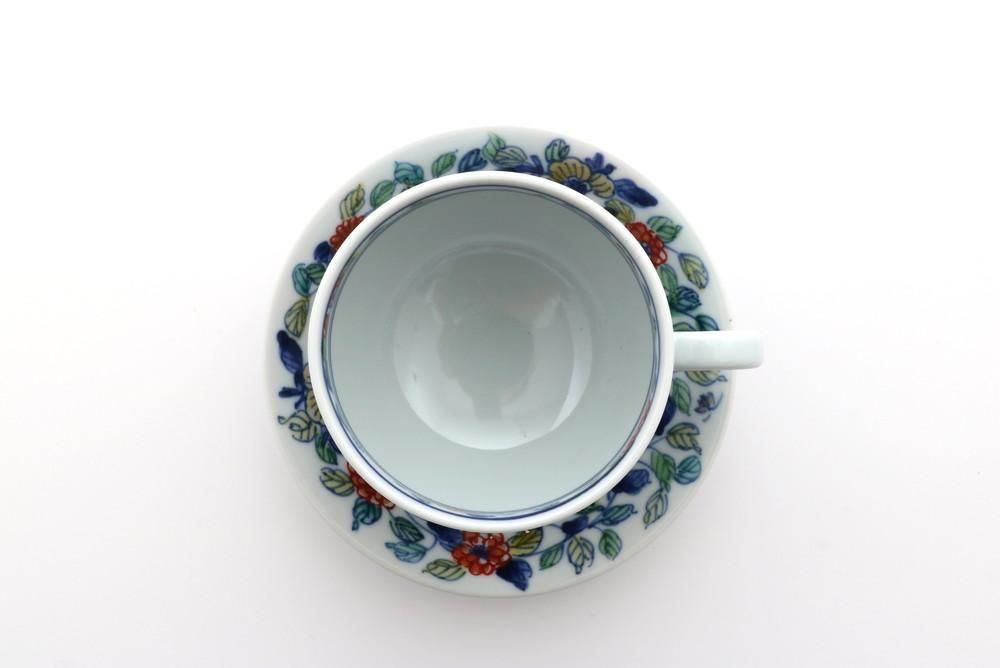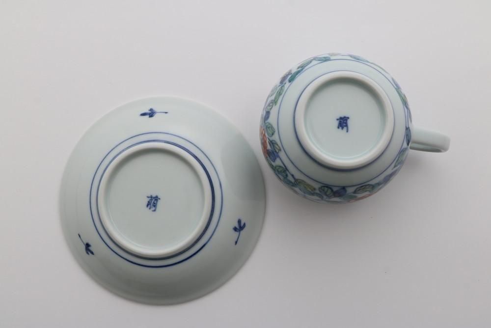 染付の青に緑や黄色、赤が良く映える珈琲椀です。