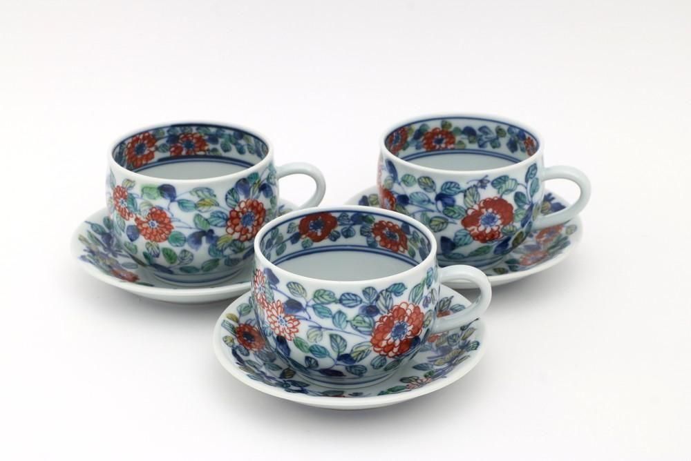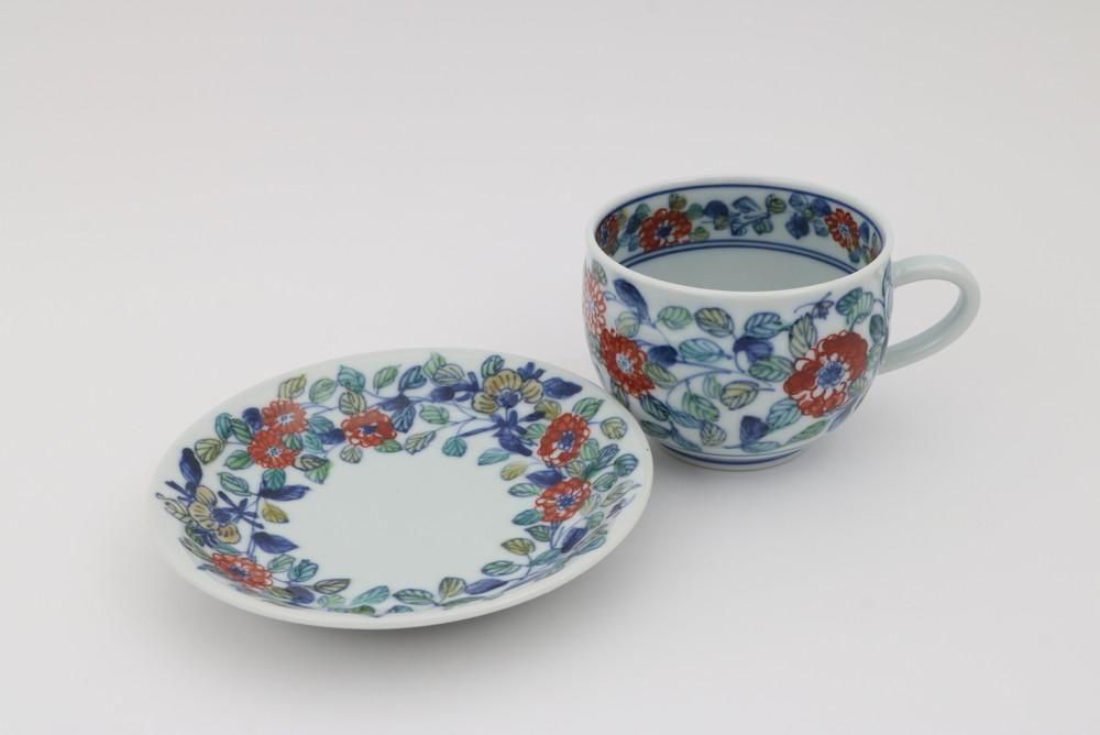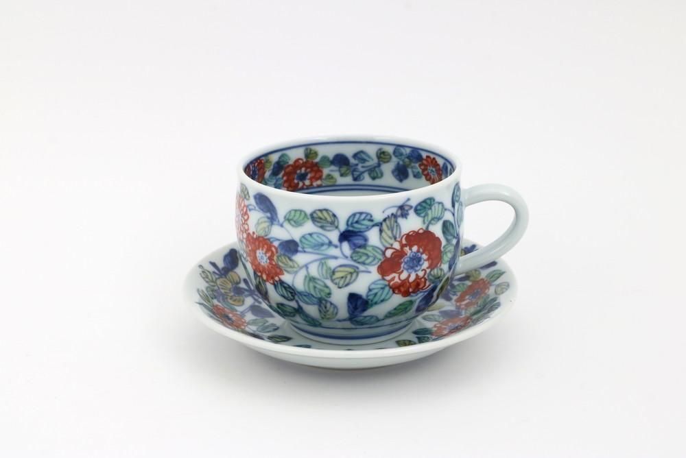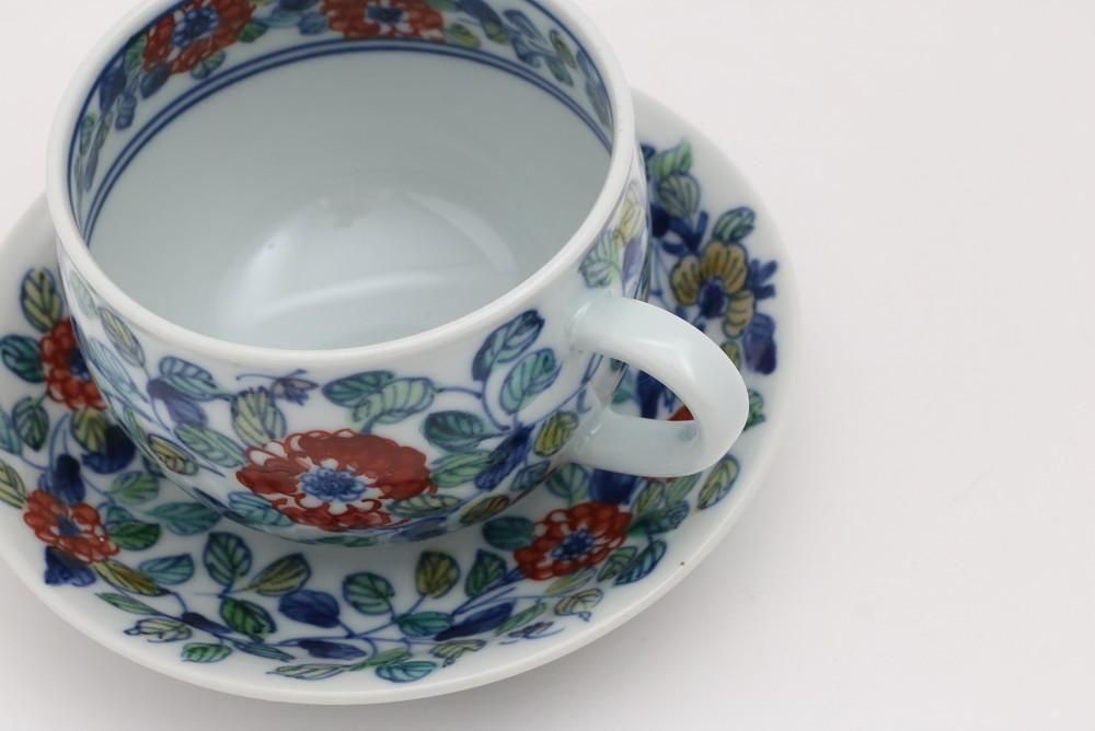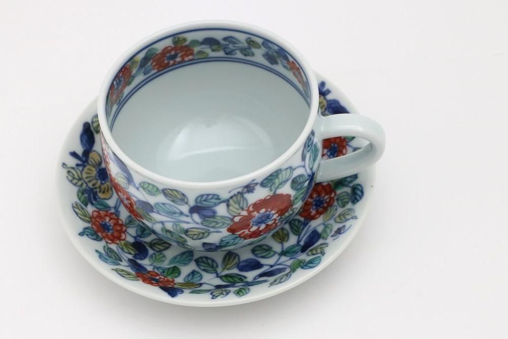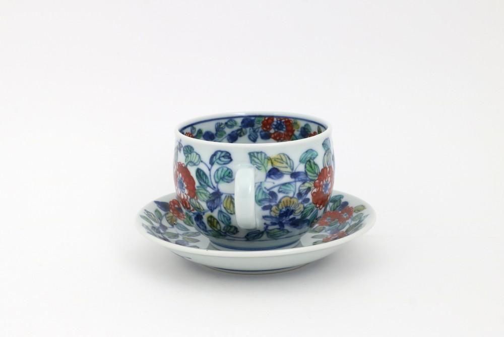 染付の青に緑や黄色、赤が良く映える珈琲椀です。