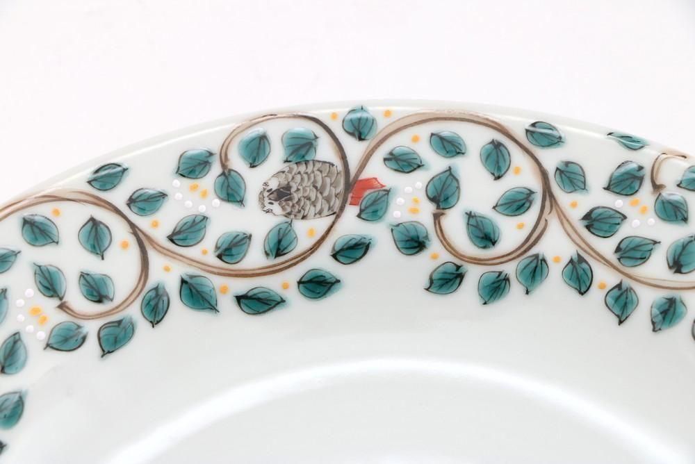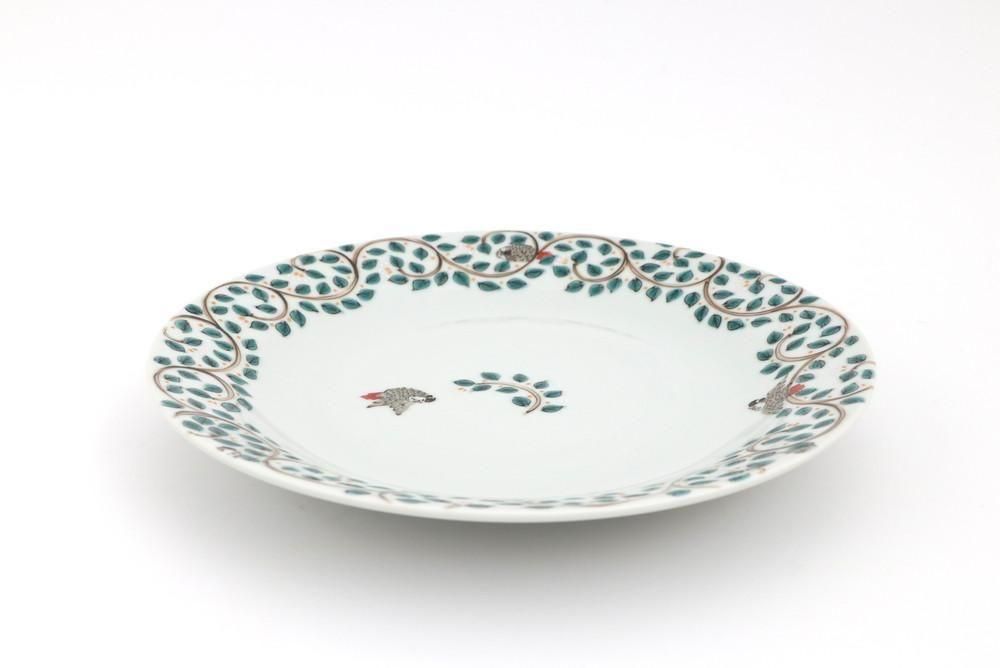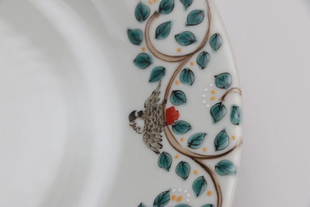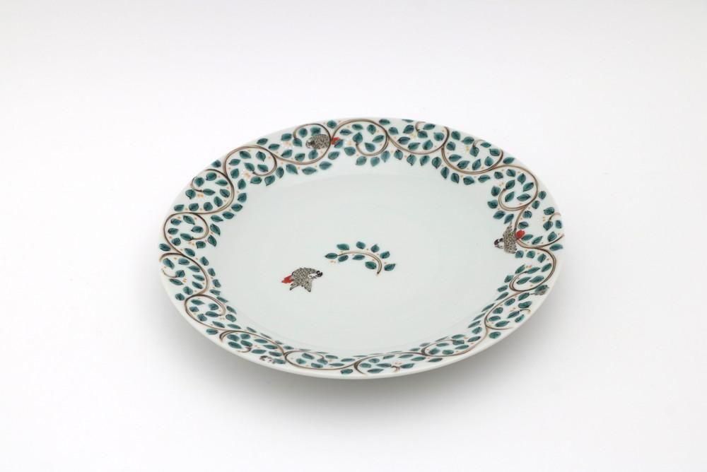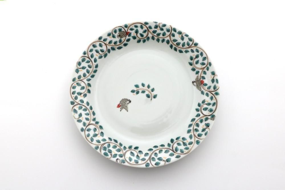 7寸リム皿 唐草インコ