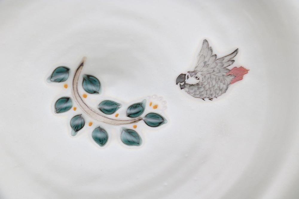 7寸リム皿 唐草インコ no.44 ヨウム