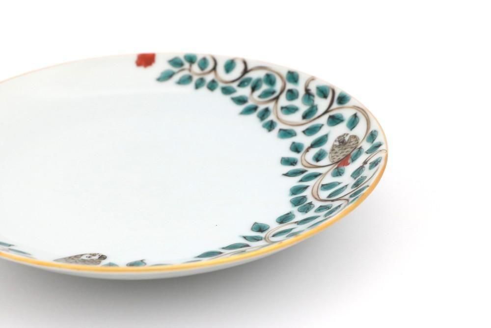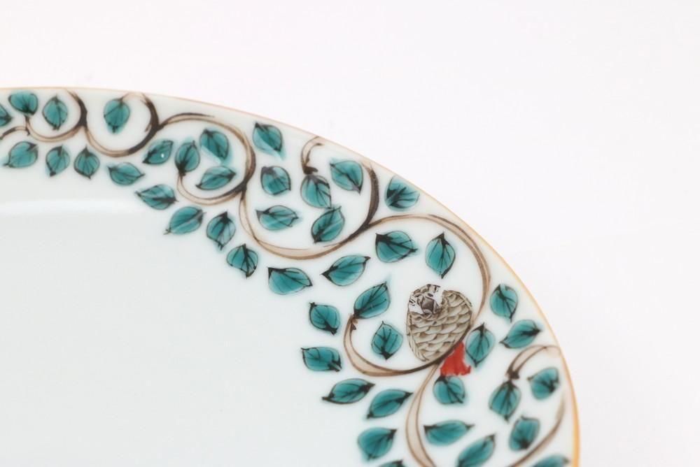 ぷっくりと盛られた絵具の葉っぱが蔦を這って弧を描きます。