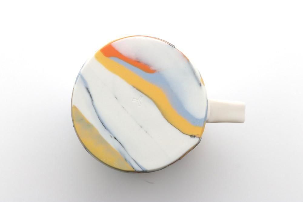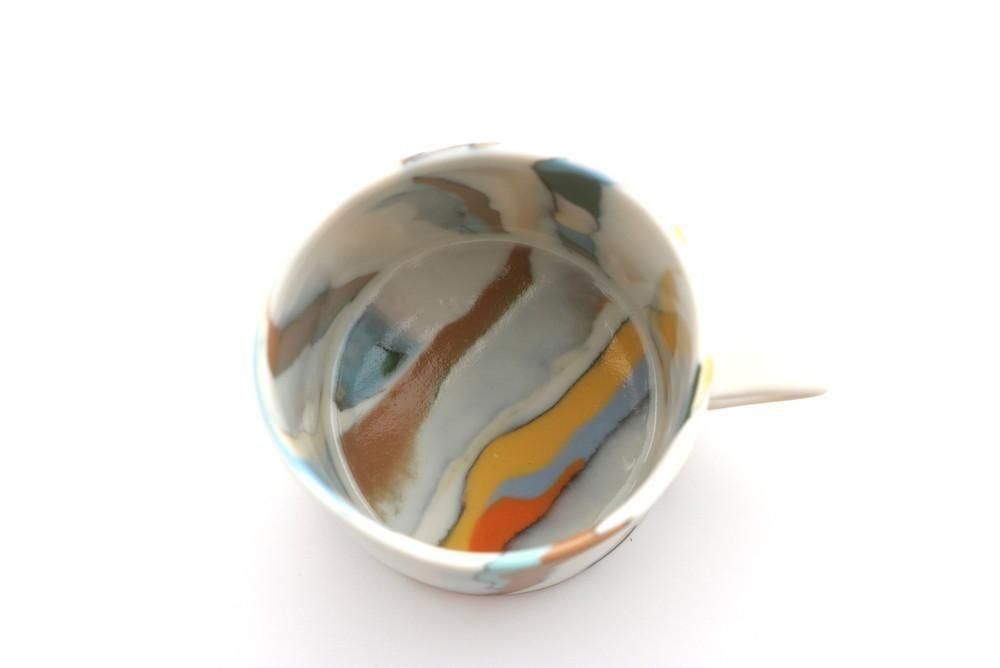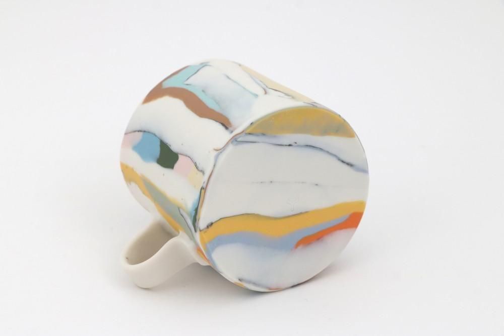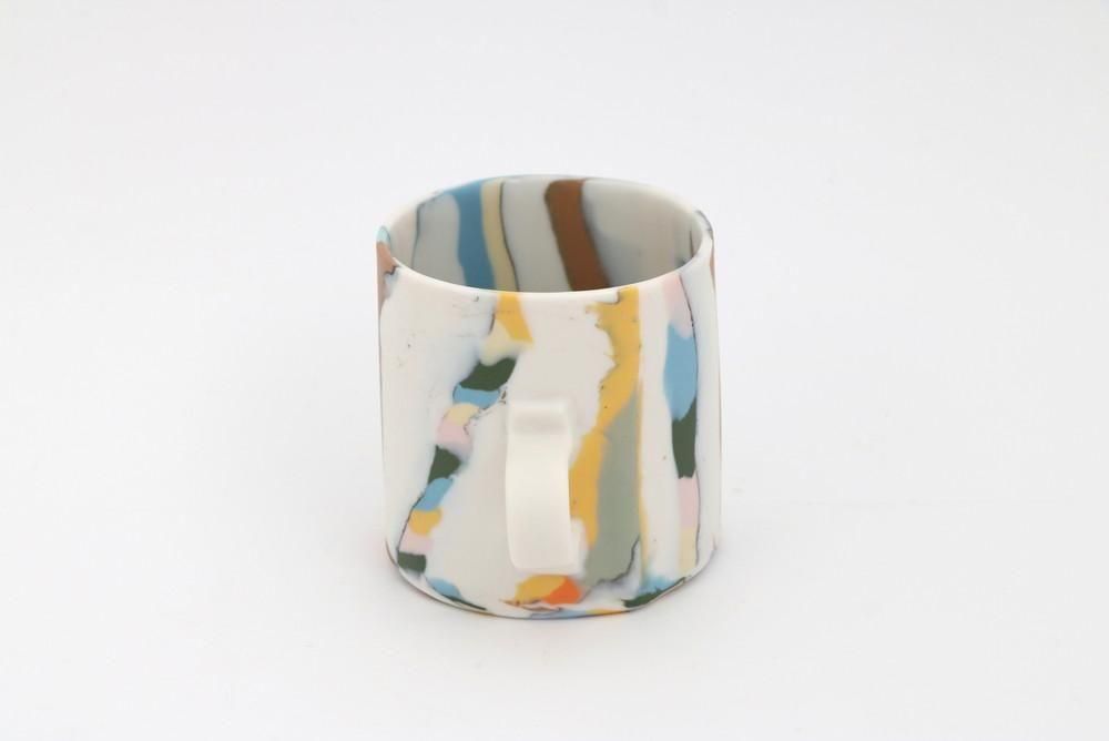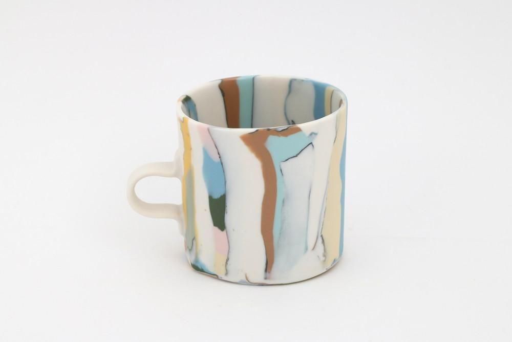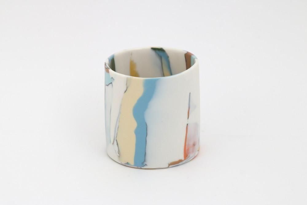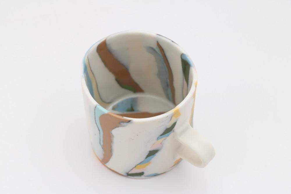 粘土に色を練り込んでは重ね、タタラ成形により創り出されたカップです。