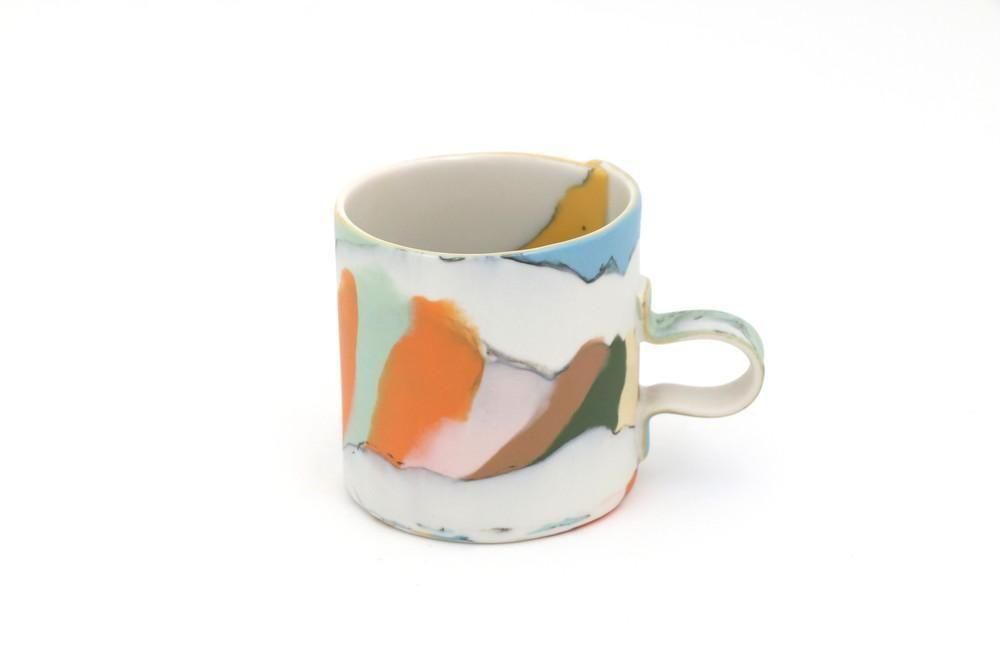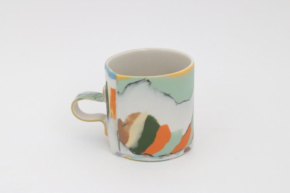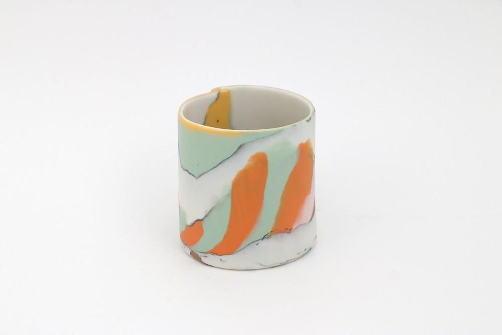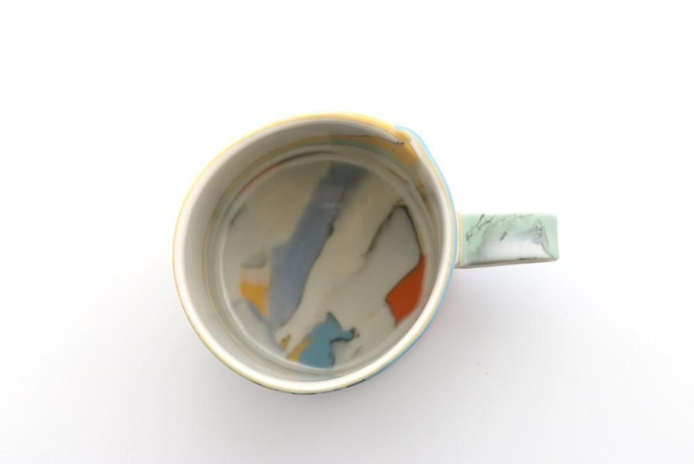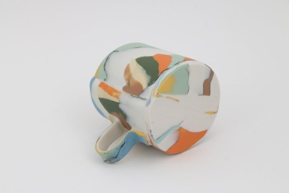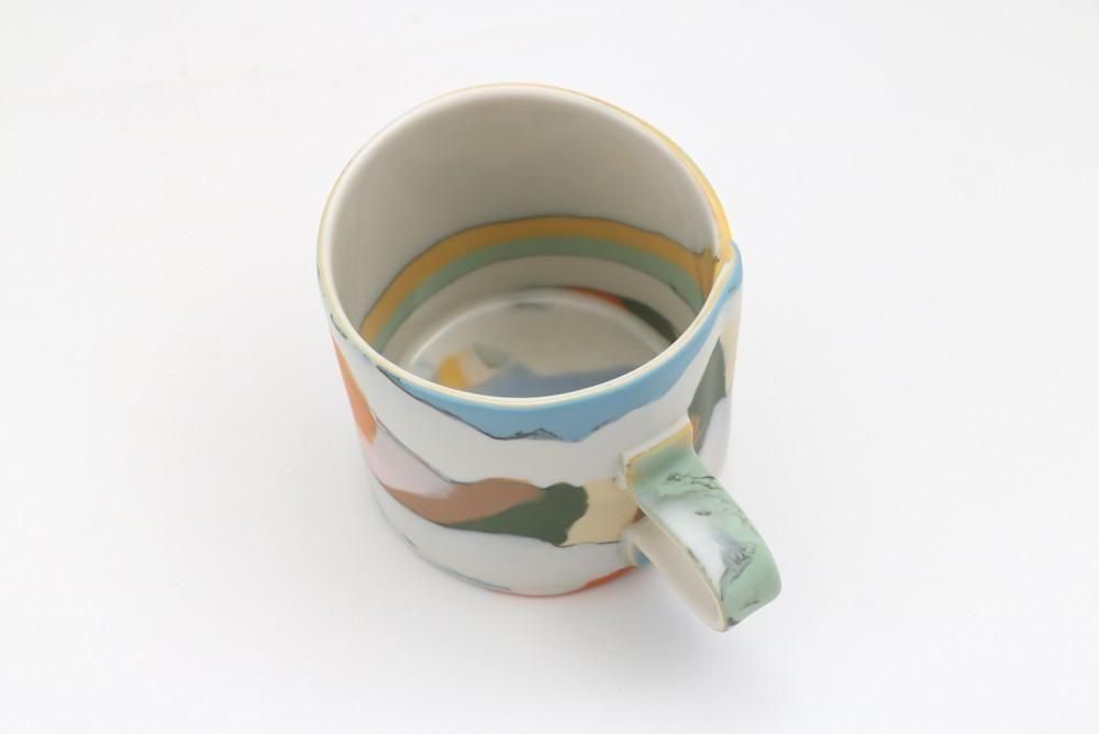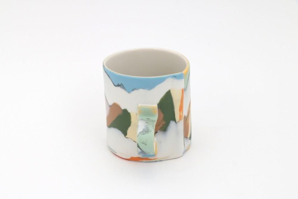 粘土に色を練り込んでは重ね、タタラ成形により創り出されたカップです。