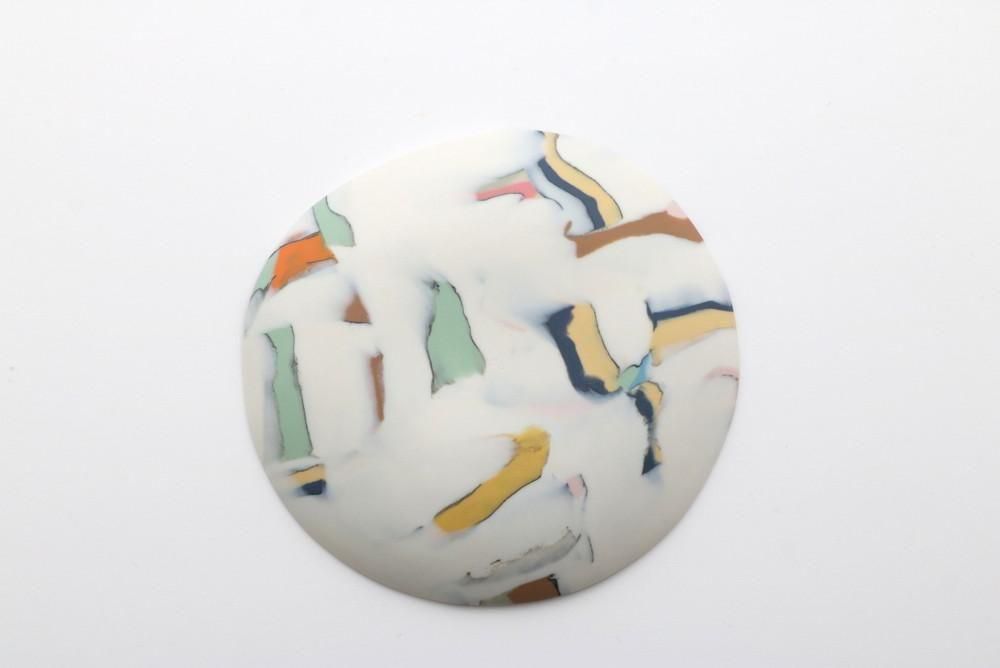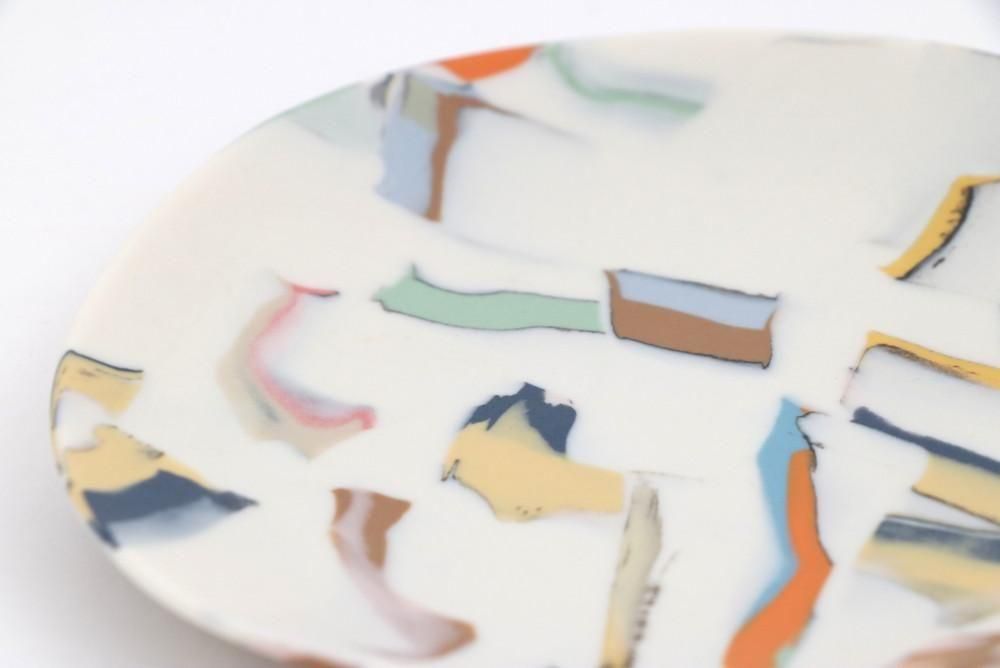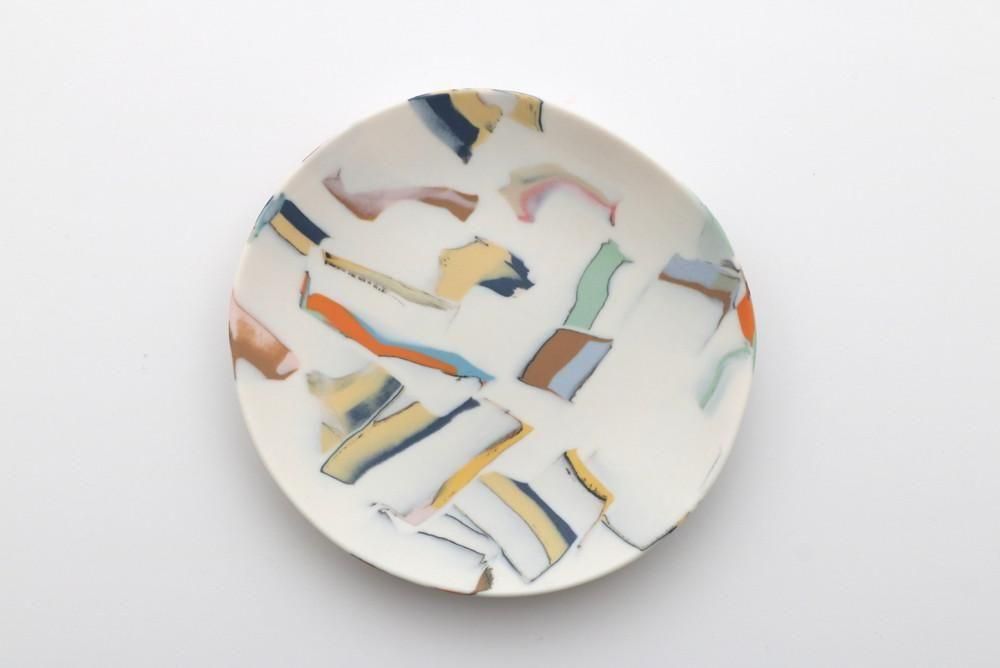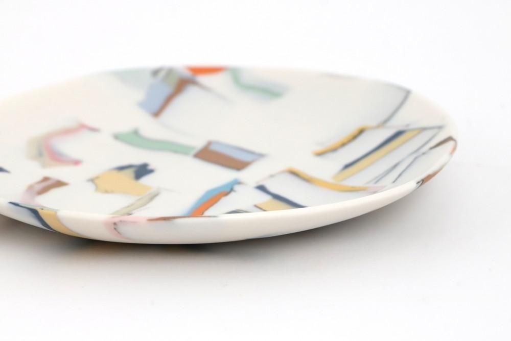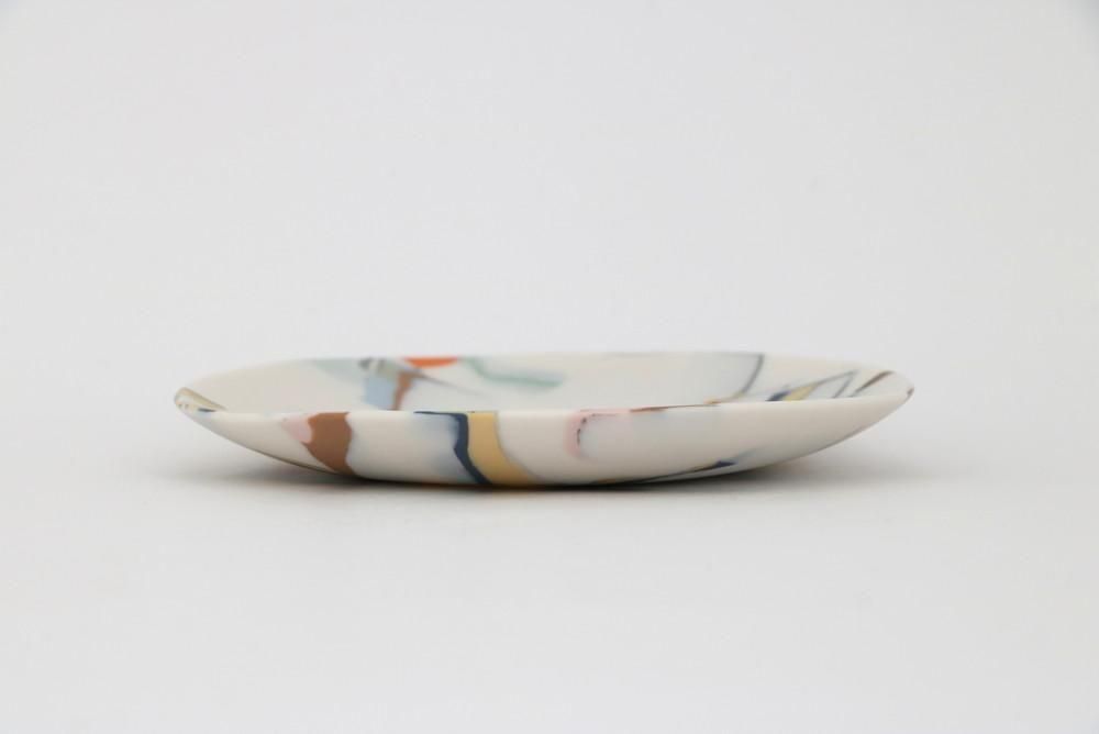 粘土に色を練り込んでは重ね、タタラ成形により創り出された小皿です。