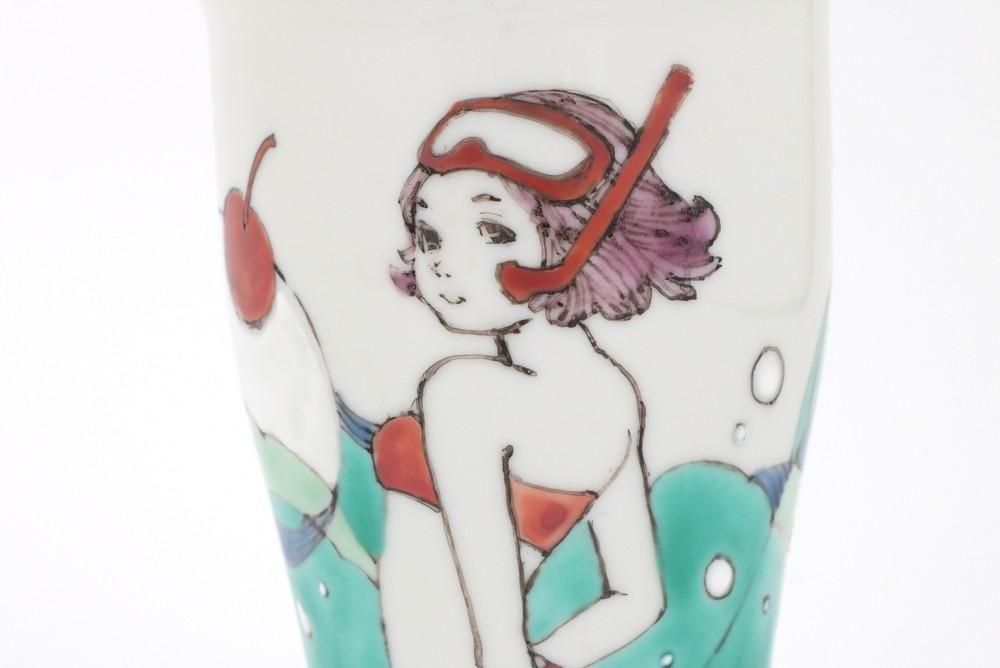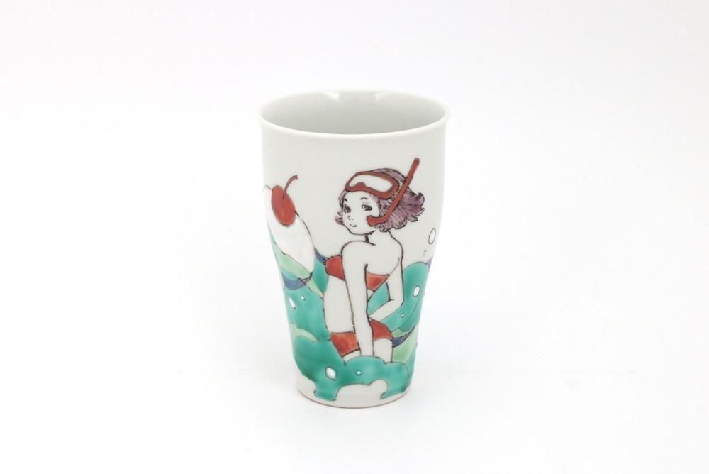 シュノーケリングの女性が魅力的な、弾ける夏にピッタリのカップです。