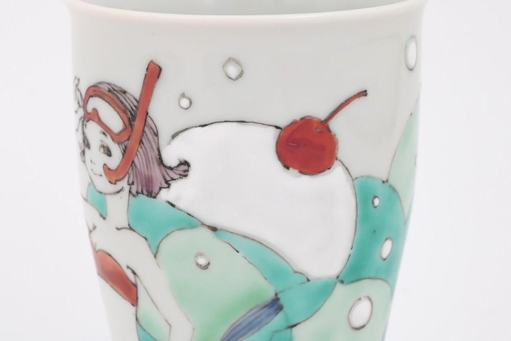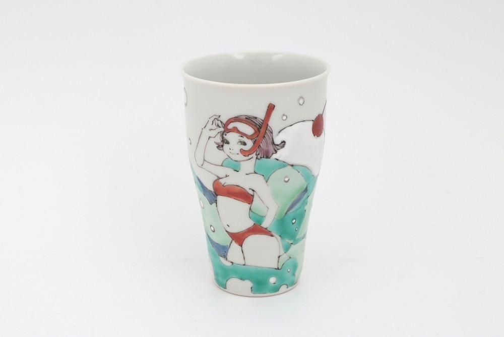 シュノーケリングの女性が魅力的な、弾ける夏にピッタリのカップです。