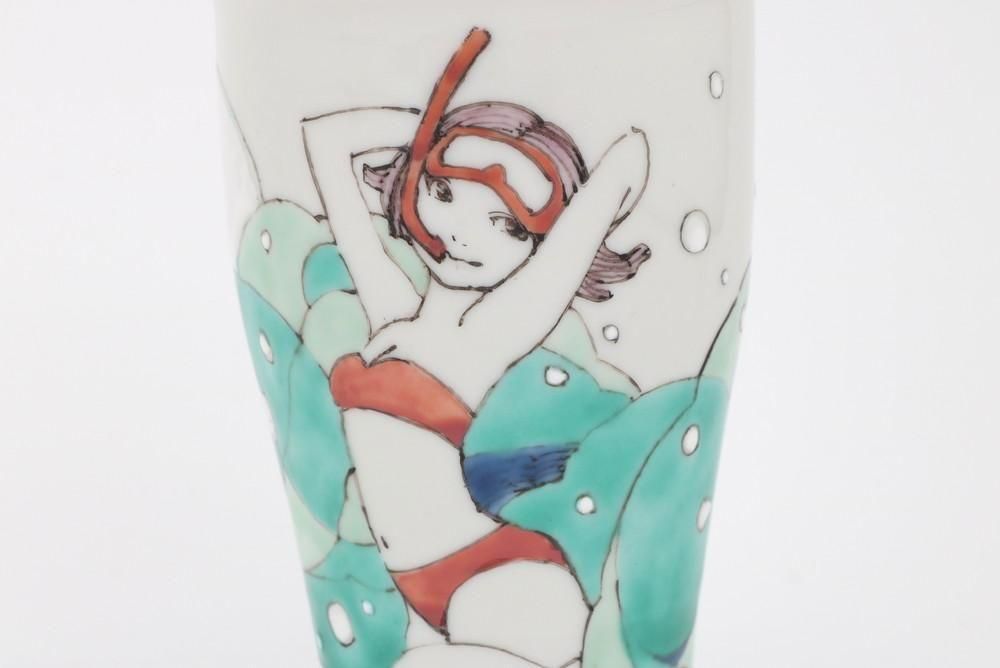 シュノーケリングの女性が魅力的な、弾ける夏にピッタリのカップです。