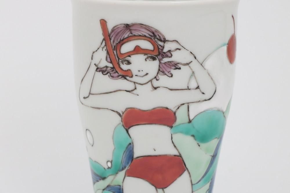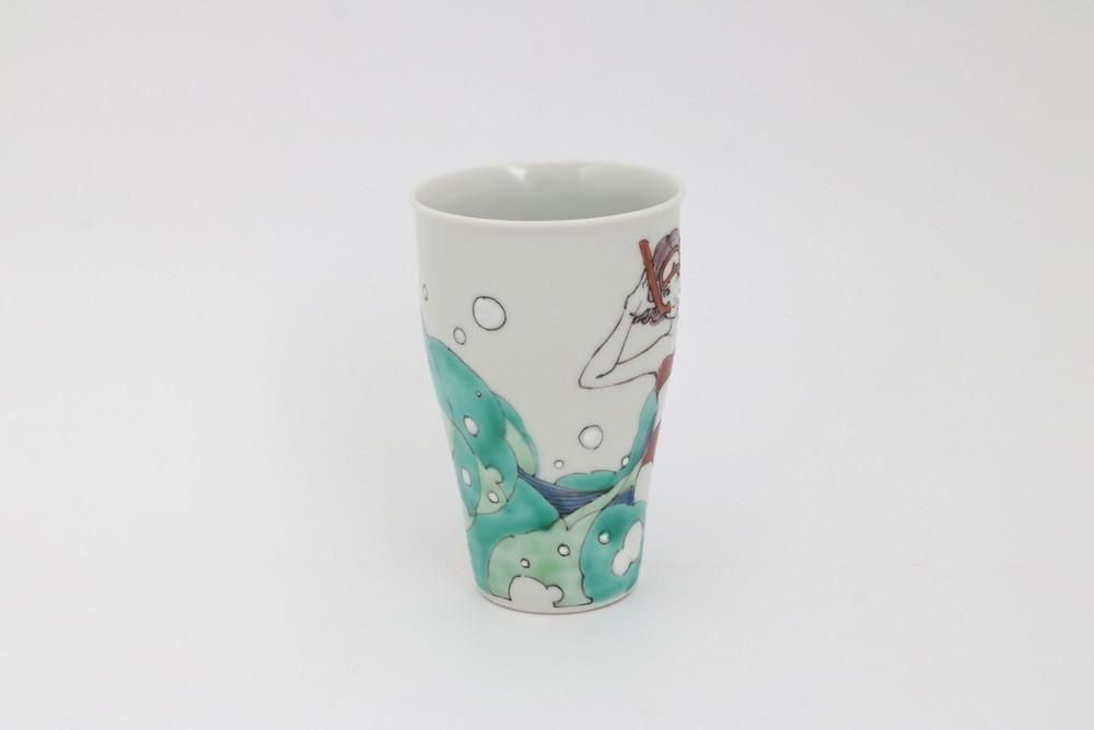 シュノーケリングの女性が魅力的な、弾ける夏にピッタリのカップです。