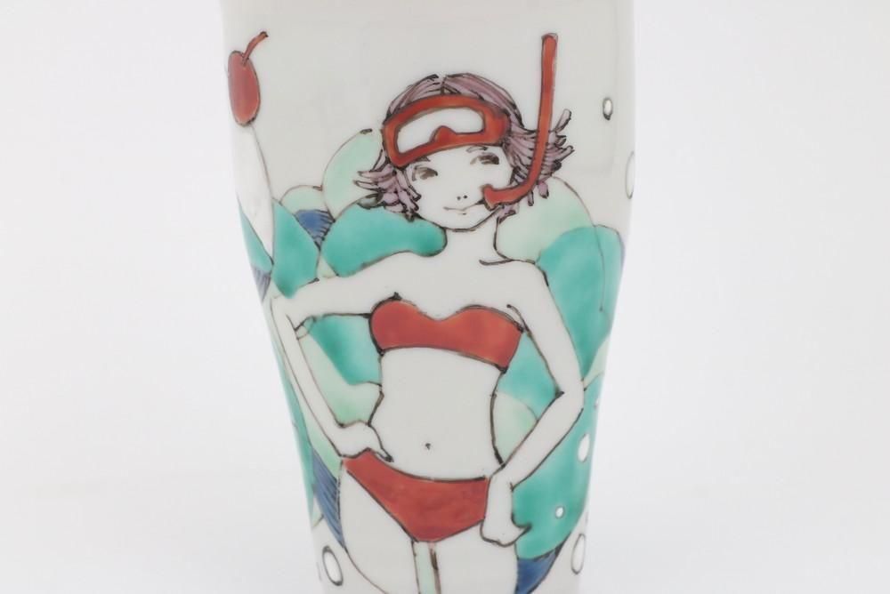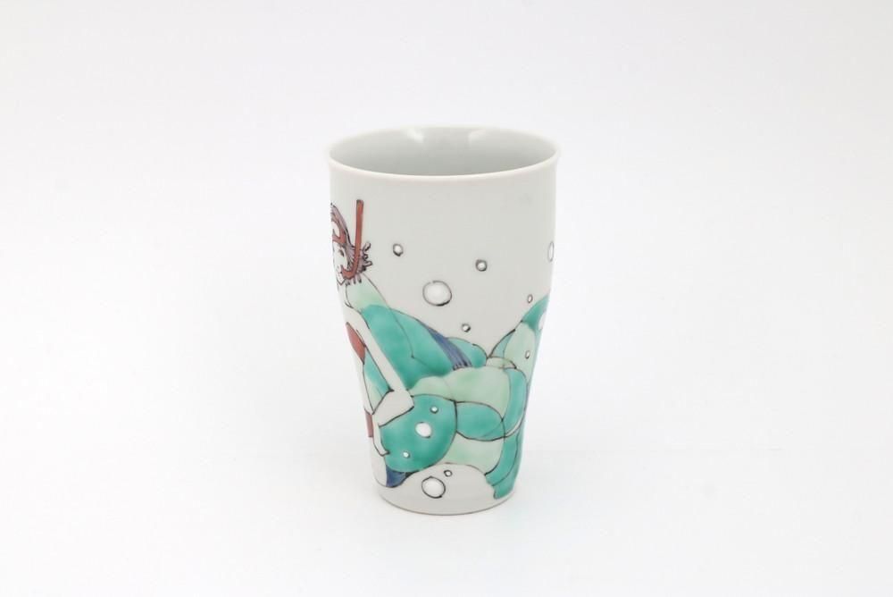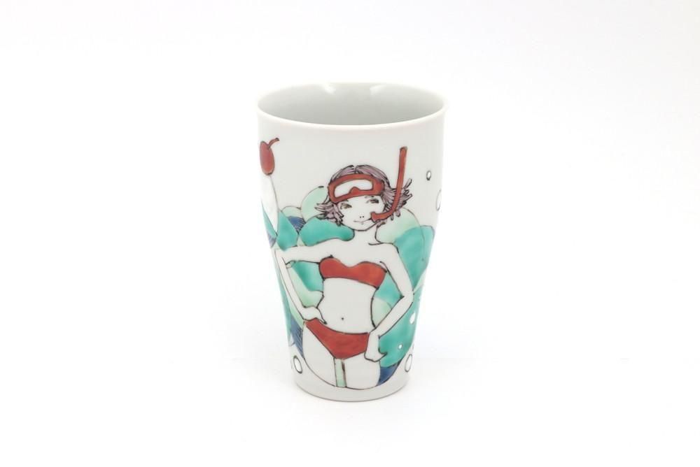 シュノーケリングの女性が魅力的な、弾ける夏にピッタリのカップです。